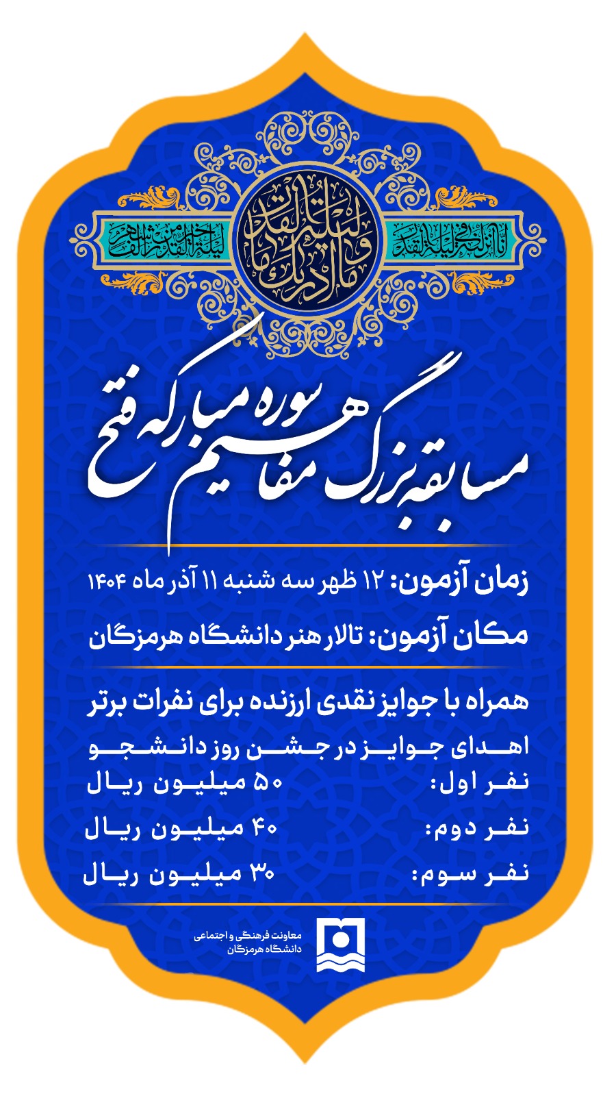 با حمایت معاونت فرهنگی و اجتماعی دانشگاه هرمزگان صورت گرفت: