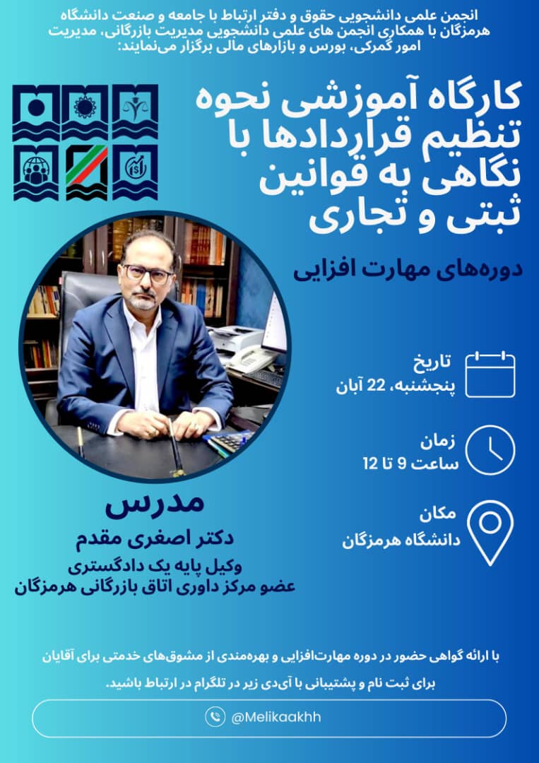 انجمن علمی حقوق دانشگاه هرمزگان برگزار می‌نماید: