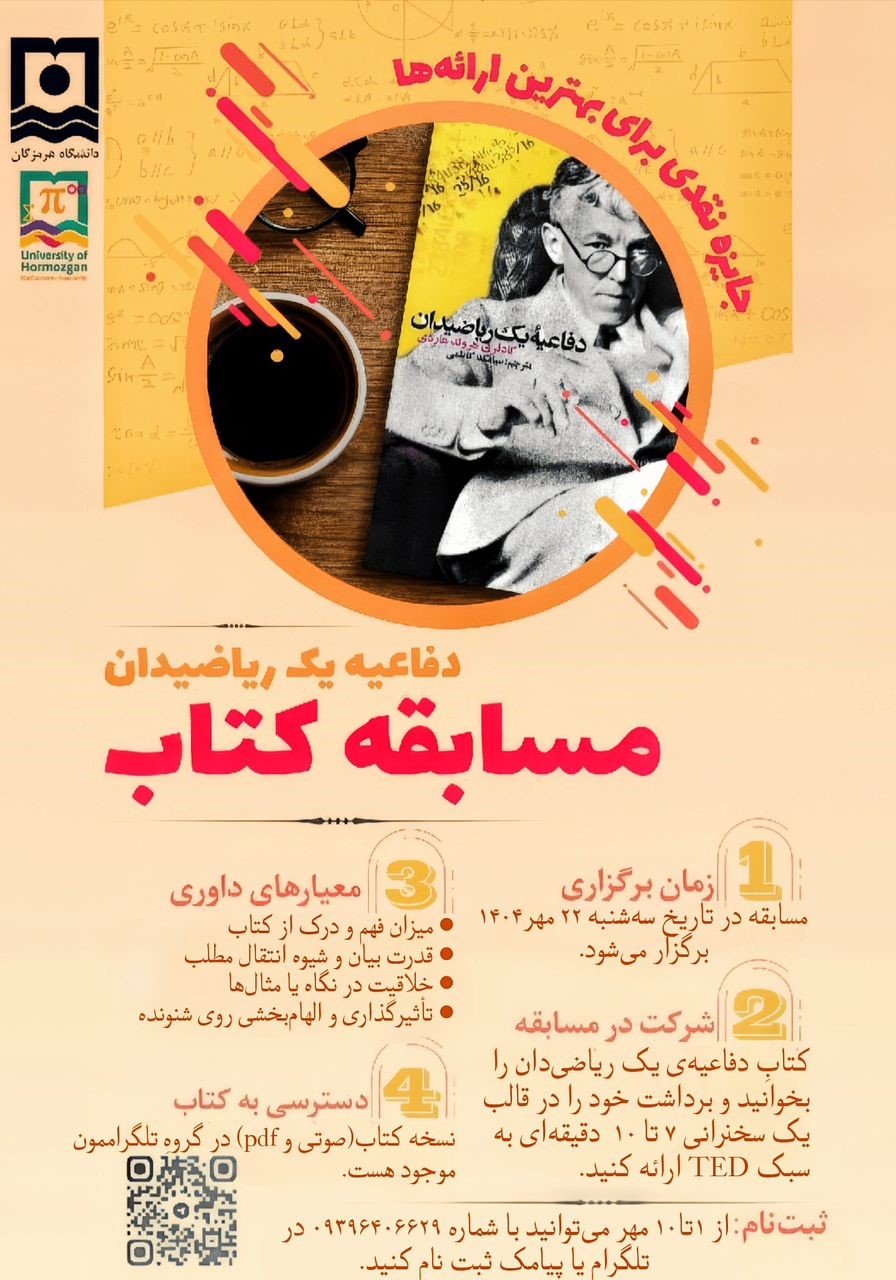 مسابقه خلاقانه کتاب‌خوانی و سخنرانی «دفاعیه‌ی یک ریاضی‌دان» در دانشگاه هرمزگان