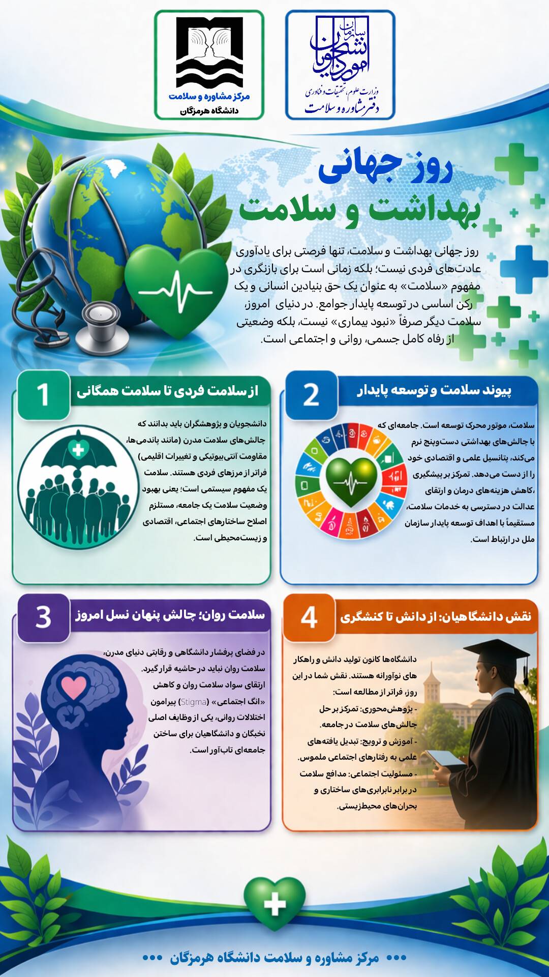 🗳️انتخابات کانون همیاران سلامت دانشگاه هرمزگان روز دوشنبه ۱۹ آبان‌ماه ۱۴۰۴ با حضور جناب آقای دکتر هادی سلیمی (رئیس مرکز مشاوره، سلامت و سبک زندگی) به‌صورت حضوری در سالن همیاران مرکز مشاوره دانشگاه هرمزگان برگزار گردید.